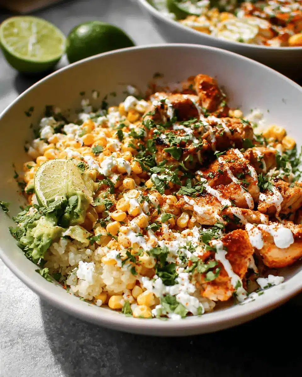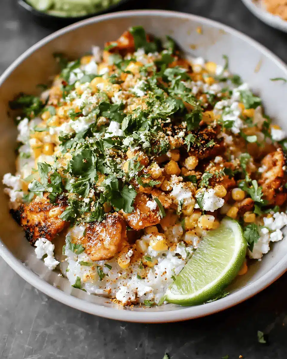 Spicy Street Corn Chicken Rice Bowls