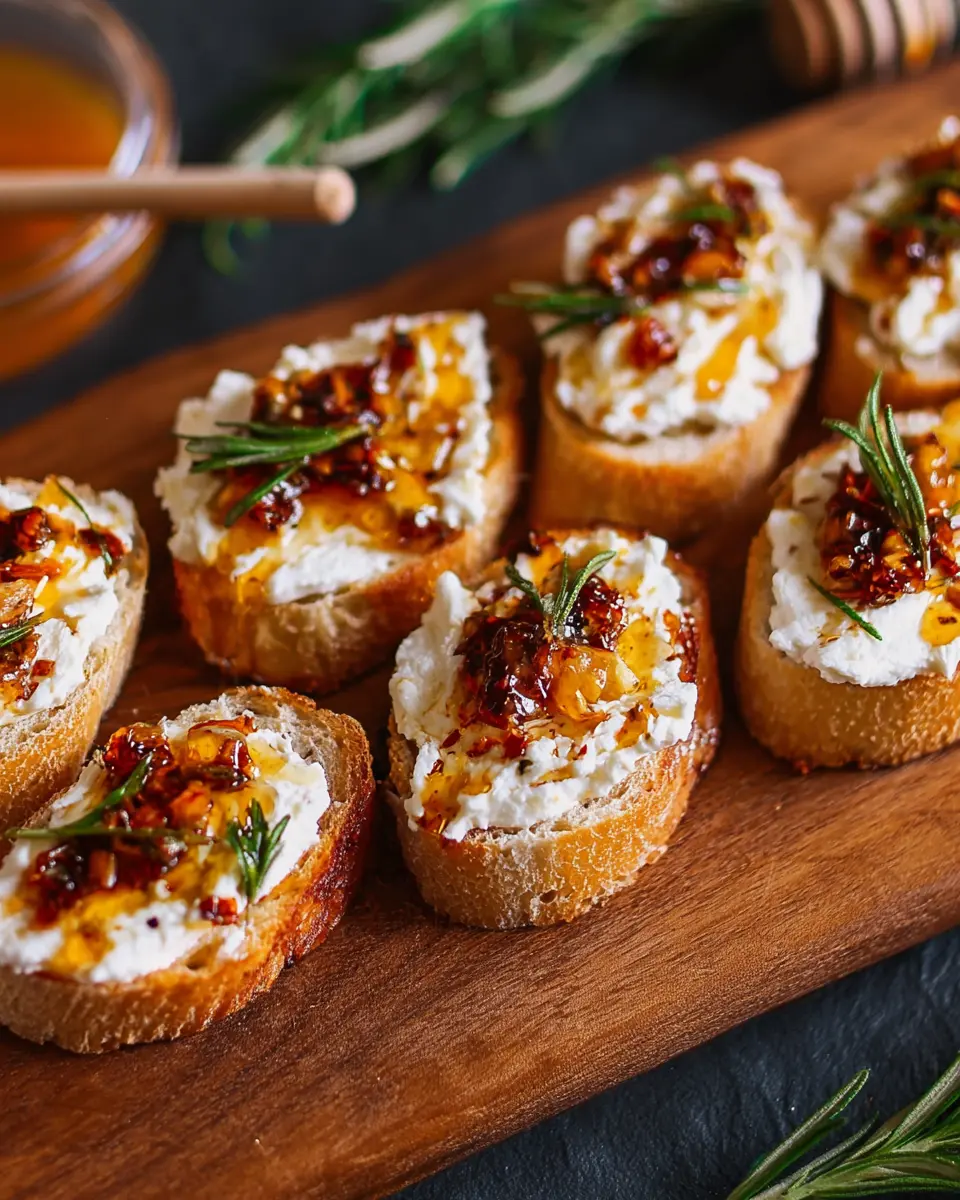 Sweet and Spicy Whipped Feta Crostini With Hot Honey
