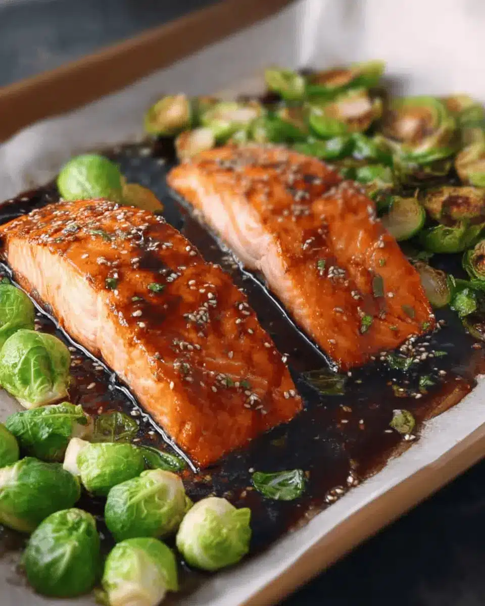 Step-by-Step Preparation of Teriyaki Salmon with Crispy Brussels Sprouts