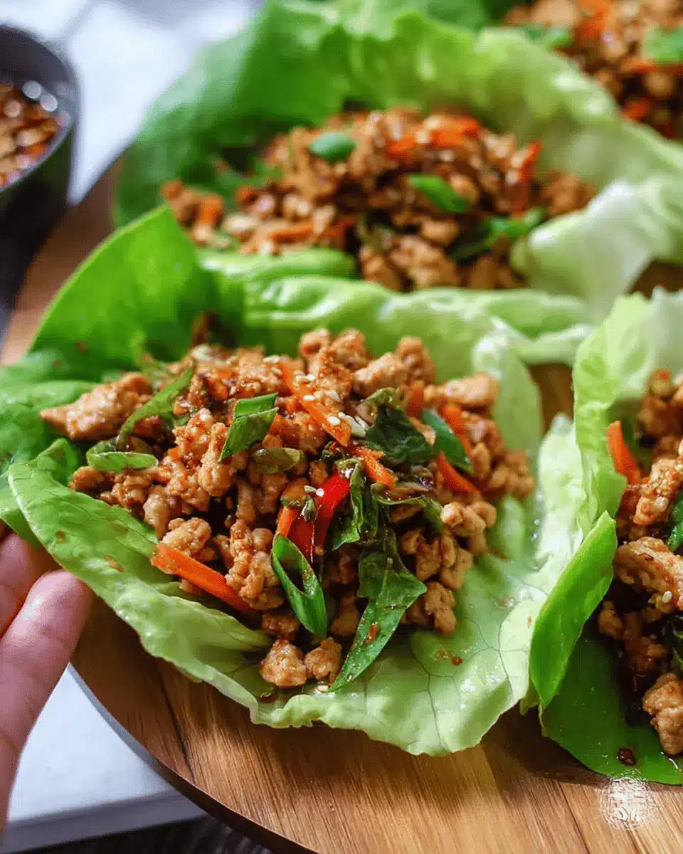 Absolutely! While this recipe features ground chicken for its lean protein and mild flavor, you can substitute it with ground turkey, beef, or even plant-based meat alternatives if you prefer a vegetarian option. Each protein will bring its own unique flavor and texture to your Thai chicken lettuce wraps.