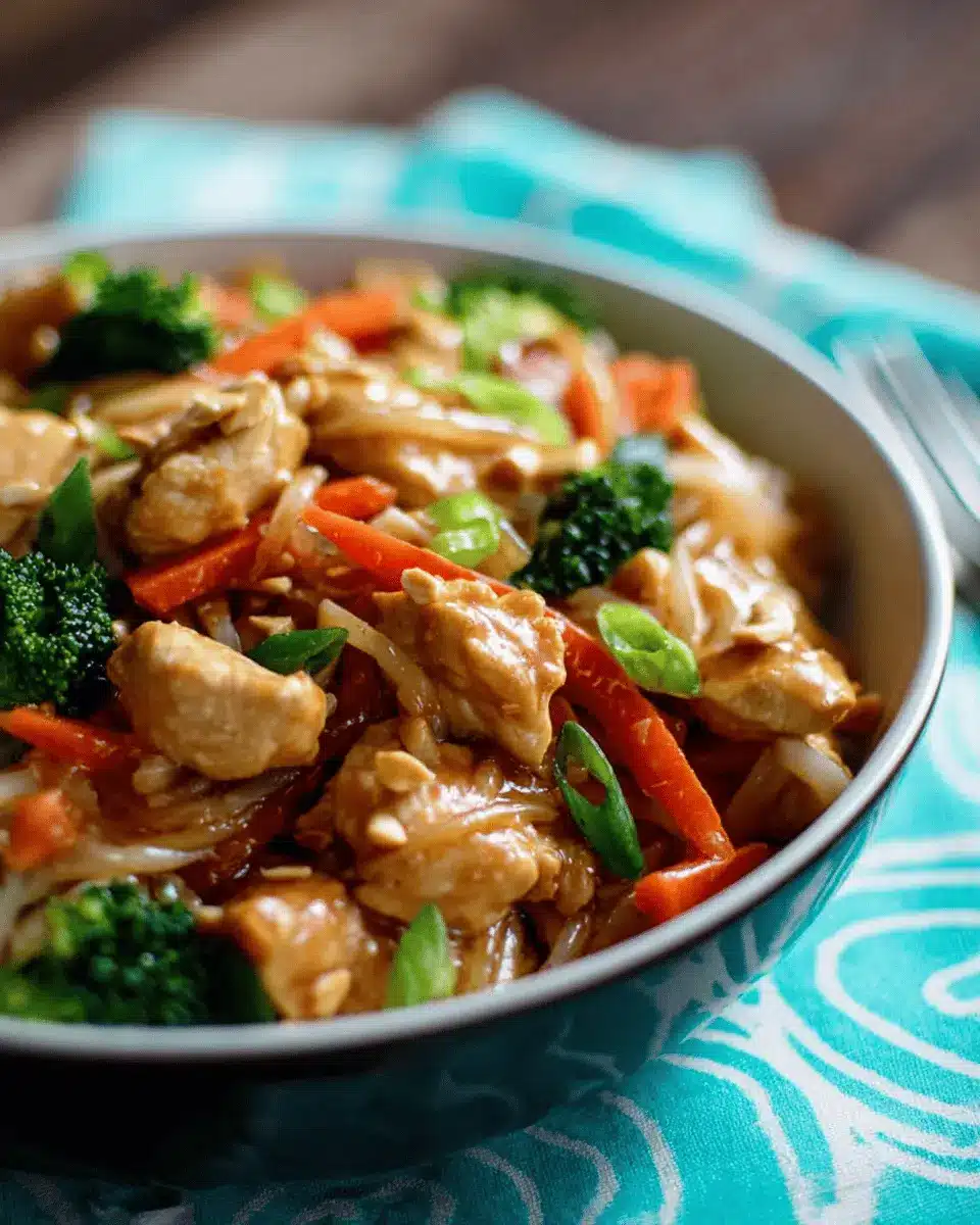 - Bowl Style: Create a vibrant bowl with layers of noodles, chicken, and vegetables, topped with extra peanuts for crunch and garnished with cilantro.