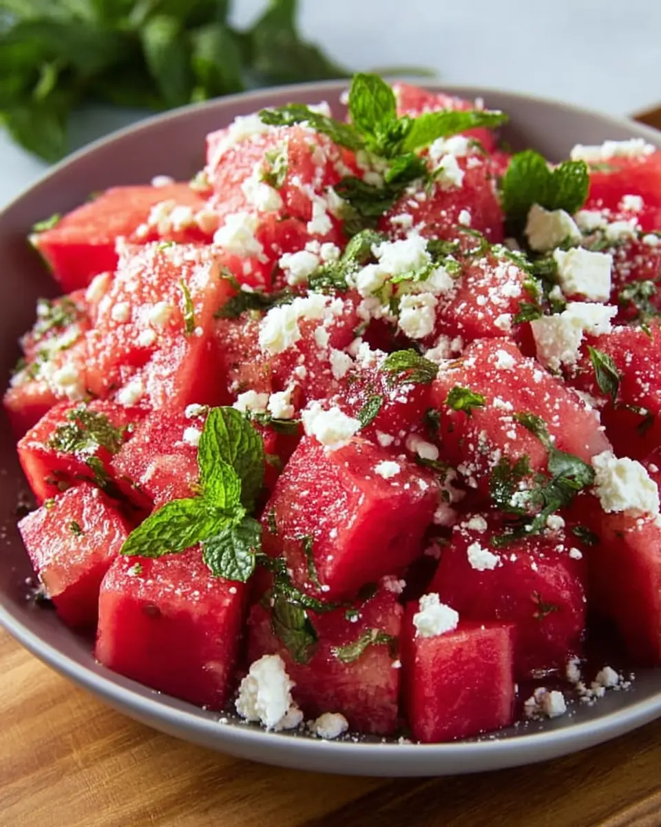 The watermelon feta salad is a delightful medley of refreshing flavors that perfectly captures the essence of summer. With its juicy sweetness and creamy feta, it’s ideal for barbecues, picnics, or a light lunch. Embrace its simplicity and share it with friends for an unforgettable dining experience!