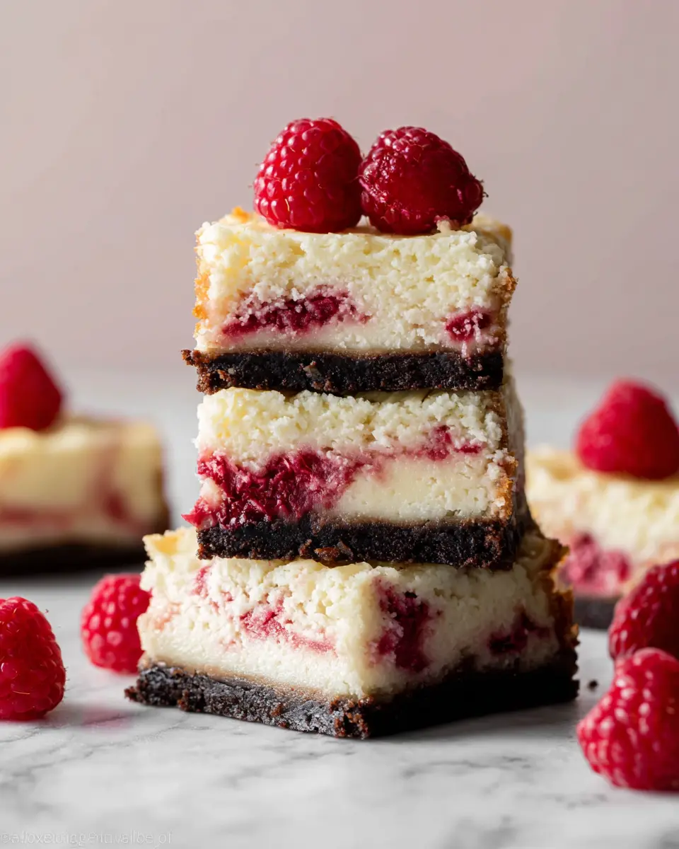 When whipping up these White Chocolate Raspberry Cheesecake Bars, avoid overmixing your filling once the eggs are added. Overmixing can introduce air bubbles, leading to cracks in your cheesecake as it bakes. Also, keep an eye on your baking time. Cheesecake is perfectly done when it’s set but slightly jiggly in the center—it will continue to firm up as it cools. Make sure to cool it gradually for a smooth texture, and always let it chill completely before slicing. Happy baking!