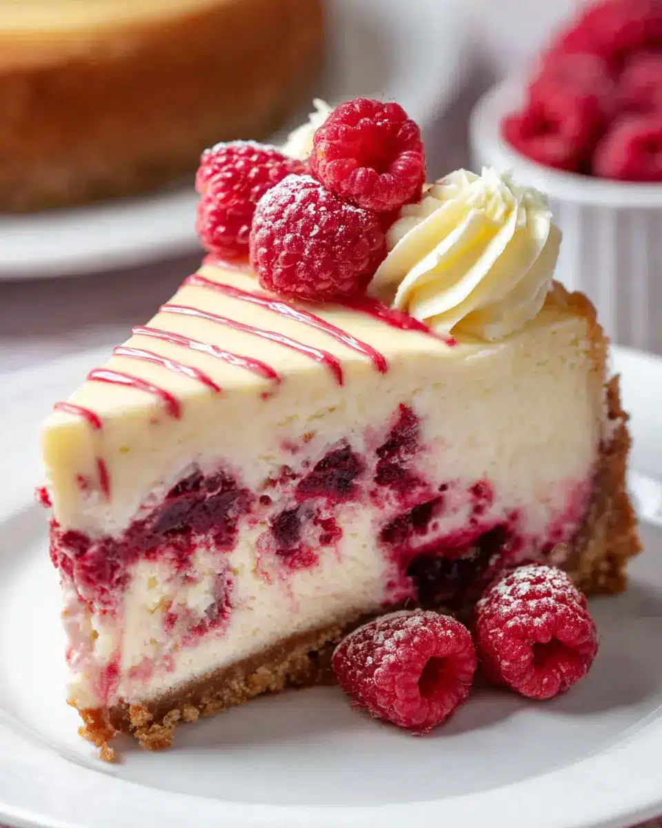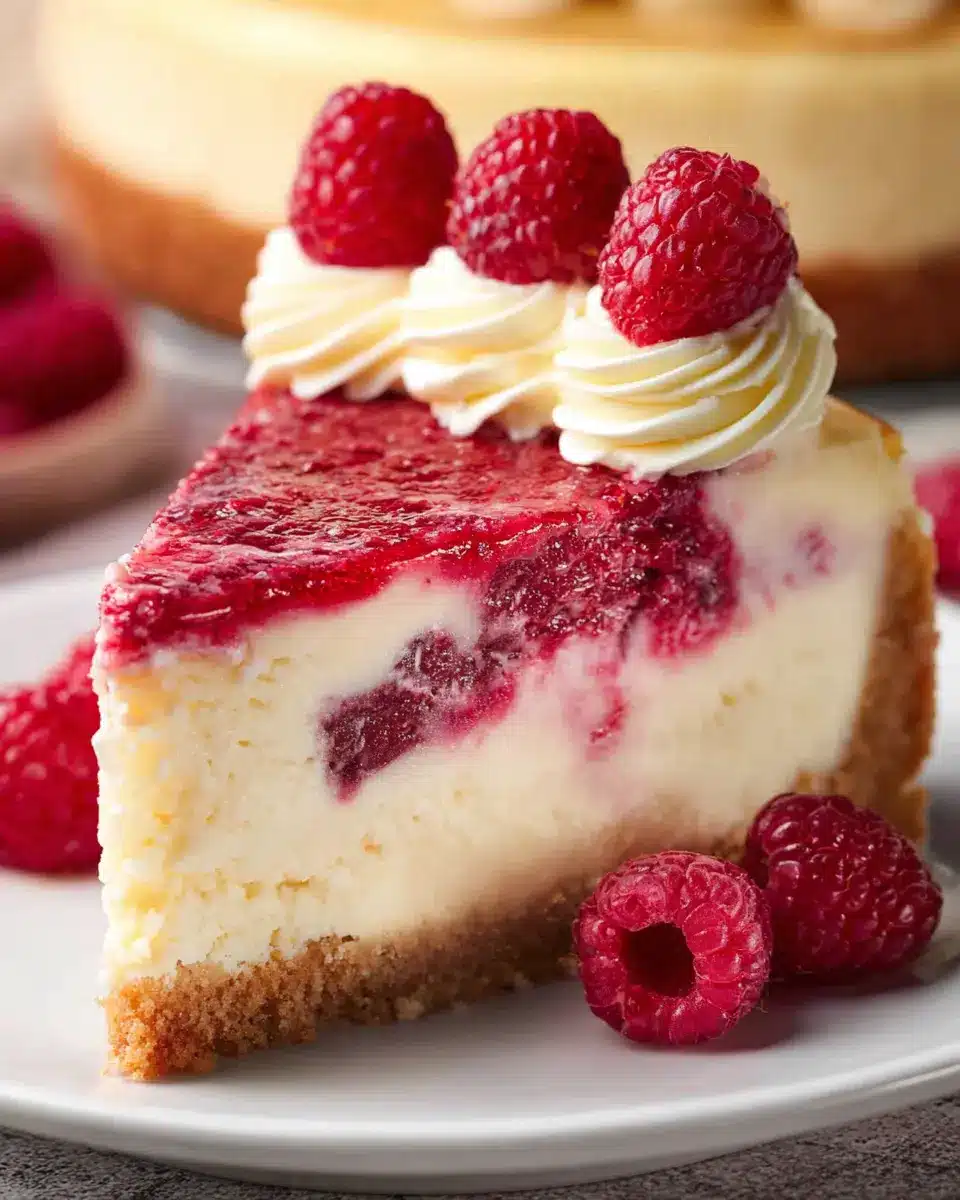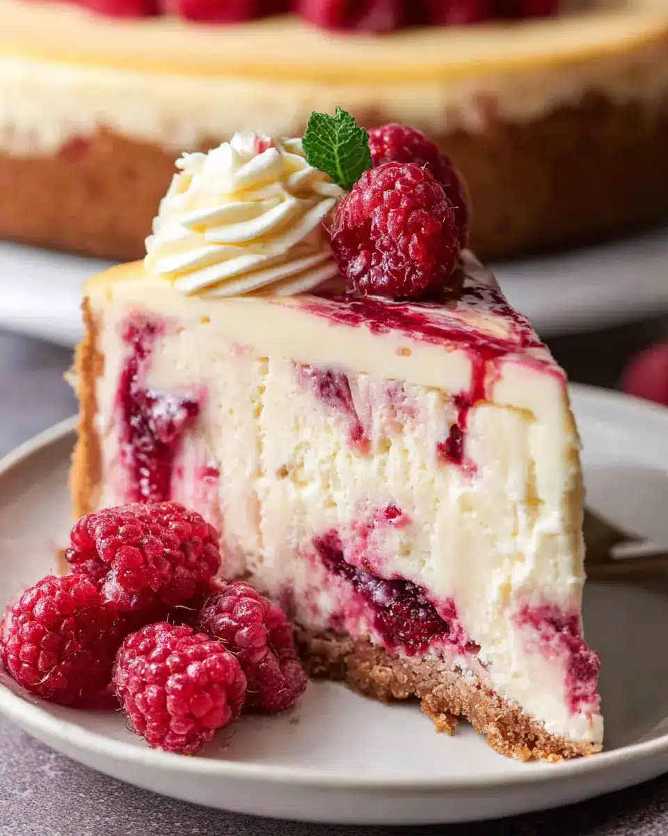 In just a few steps, you’ll be indulging in a slice of heaven. Let’s dive into the delicious details of this White Chocolate Raspberry Cheesecake recipe!